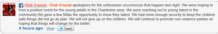 Isn’t that sweet? Children really do need a bar in which to “show they talent”. Let’s review the report filed recently at WCSC’s website to see what other talents those children were showing. When you click that link and read the report, remember to substitute the politically correct term “teen” with the more appropriate descriptor “thug”.