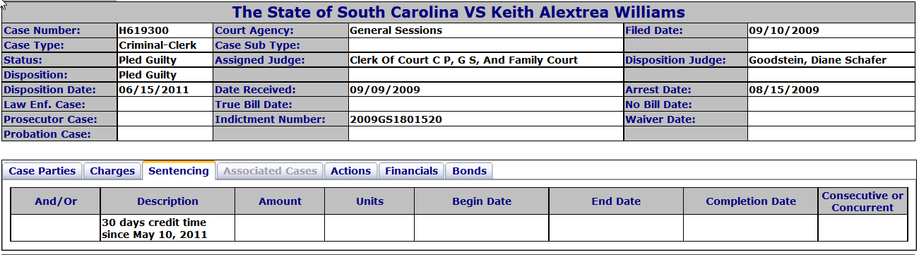 Let’s look at the criminal history of Williams.