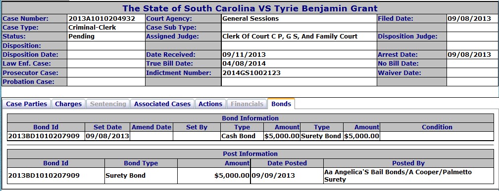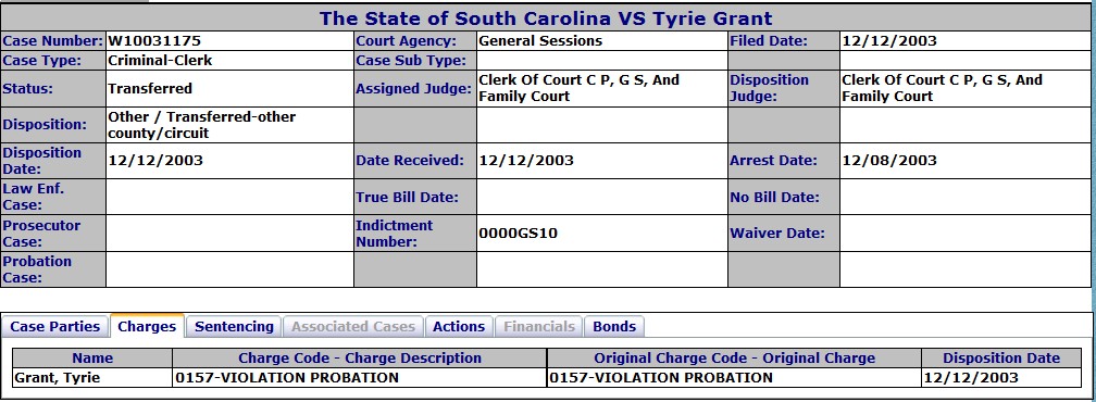 At the time he was arrested in October, Grant was free on bond on other pending charges from 2013. To date, there has been no effort by the 9th Circuit Solicitor to revoke those bonds.