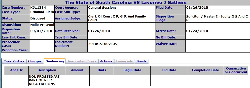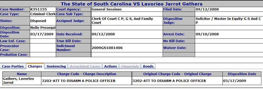 Gathers went to trial in April 2014 on 2011 charges of Possession of a Weapon During a Violent Crime and two counts of Armed Robbery. You can read about the offense HERE. A jury found Gathers not guilty. We won’t even comment on that other than to say, if you sat on that jury and would like to explain that decision, shoot us an email via the contact page.