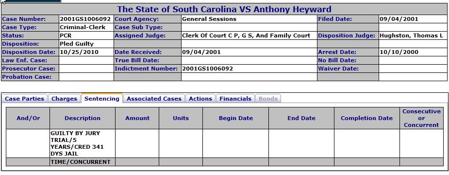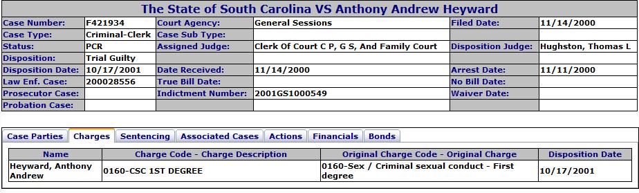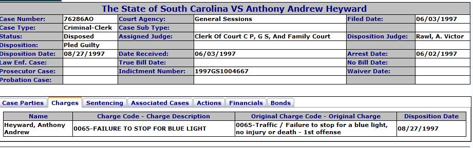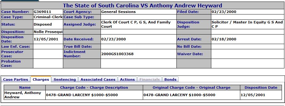Note: These charges were dismissed in 2001 due to Heyward doing life without parole on charges listed above.