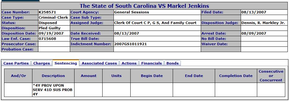While awaiting a disposition on the assault charge from 2012 Jenkins was charged with Interfering with a Fire Alarm Box and Malicious Damage to Property at the Sheriff Al Cannon Detention Center. Judge Coker sentenced him to 30 days each, concurrent, which was served while Jenkins was serving time for the assault charge.
