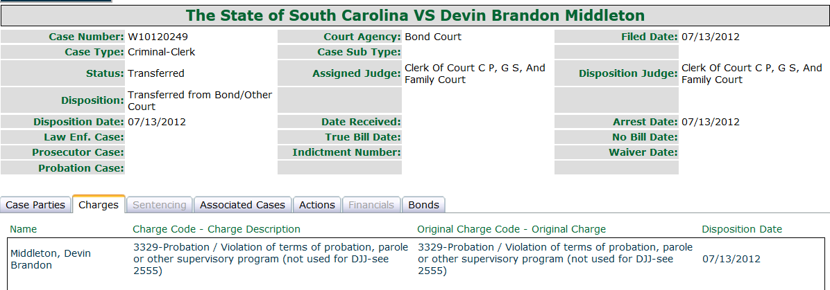 We have written about Middleton several times since 2012. Middleton and Dontez Wright were charged with the Crosstown murder of Wiliam Dee Nelson in 2012. Apparently they had been involved in a feud with Nelson over drug turf. In 2014 the 9th Circuit Solicitor dismissed all charges related to the murder. Let’s run through Middleton’s history one more time. Most of these charges were captured by us when we first wrote about Middleton. It’s a good thing we still have them as many have disappeared from the public database.